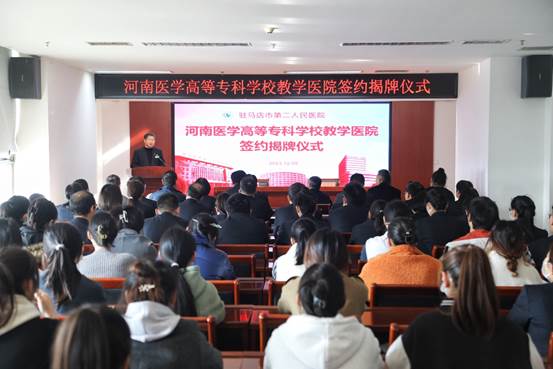 学校教务处、公共卫生与健康管理学院负责人和相关工作人员以及驻马店市第二人民医院领导班子成员、各科室负责同志以及带教老师、实习学生代表参加签约仪式。(文·图/赵佳)