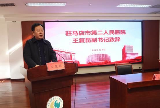 王复昆致欢迎辞,他表示,教学医院的建立是医院发展历程中的一件大事,为院校双方搭建了合作发展的平台,对提升医疗科研水平、加快卫生人才培养、促进医院学科建设、增强医院综合服务能力具有十分重要的意义。医院将履行好教学医院的职责,充分发挥医院资源优势,推进教学活动与医疗活动的对接,实现校院产教融合共赢、协同创新发展。