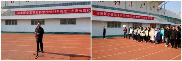 寒冬来临,为深入推进全民健身运动,活跃教职工文体生活,增强教职工身体素质,引导教职工养成健康文明的生活方式,12月26日,学校2023年教职工冬季长跑比赛在田径运动场举办,学校党委副书记、健走俱乐部主席王传中致辞,党委副书记、工会主席李鹏涛为比赛发令鸣枪,工会副主席张红主持活动,来自全校各界420余名教职工参加活动。