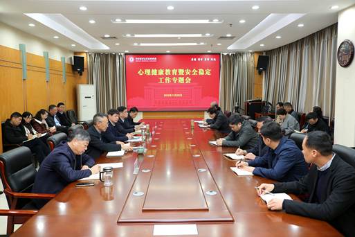 12月29日上午,学校心理健康教育暨安全稳定工作专题会议在图文信息中心第一会议室召开,学校党委书记花明、校长孙韬、党委副书记王传中、副校长张进忠出席会议,党委副书记、工会主席李鹏涛主持会议。各党总支(直属党支部)、单位、部门负责人参加会议。