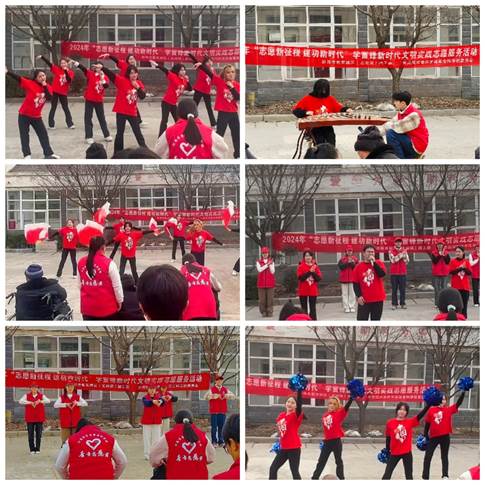 志愿者们一来到敬老院就立即行动起来,清扫地面,擦拭桌椅、清理垃圾、整理内务……志愿者们忙碌的身影穿梭在敬老院的每个角落;志愿者们为老人们放松身体之余陪他们畅聊生活趣事;志愿者们还为老人们带来了精彩的节目:古筝弹奏《浏阳河》、舞蹈《new boy》、《九州同》、手语《如愿》、歌曲《桃花朵朵开》……老人们被精彩的节目所吸引,不时爆发出热烈的掌声,脸上都洋溢着幸福的笑容。志愿者们用平凡和朴实的行动,为老人带来了温暖和快乐,用实际行动践行着雷锋精神。
