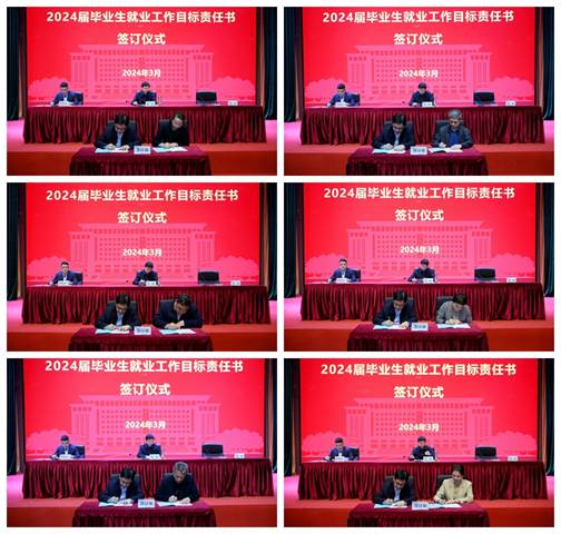 孙韬代表学校与各学院行政负责人签订了2024届毕业生就业创业工作目标责任书,进一步压紧压实工作责任,落实落细各项工作措施,确保顺利完成2024届毕业生就业创业工作目标任务。