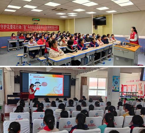 3月21日,新葡的京集团8814vip青年志愿者协会“医”马当先志愿服务宣教团联合龙湖镇管委会开展“关爱花蕾 护苗成长”儿童防侵害知识宣教活动。校团委刘燕老师带领十余名志愿者一起走进新郑市龙湖镇荆垌完全小学,分别在报告厅和录播教室举办了两场儿童防侵害知识讲座,荆垌完全小学德育处主任乔晓翠及四、五年级老师全程观摩课程。