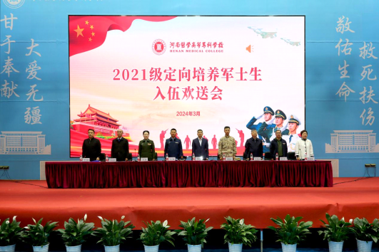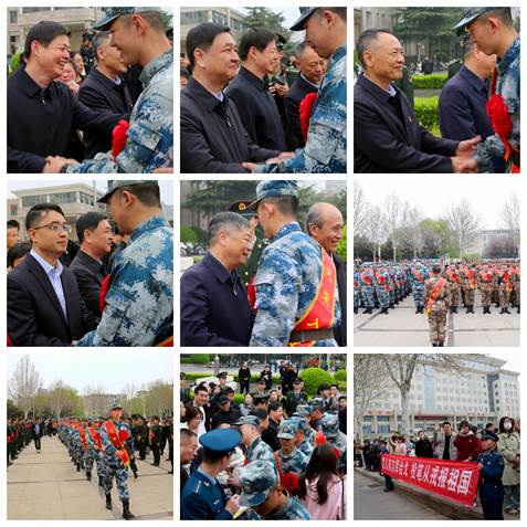 3月27日,2021级入伍军士生在图文信息中心前广场集合出征,校领导花明、孙韬、王传中、李鹏涛、张进忠以及护理学院师生为他们送行。2022级、2023级军士生齐唱《强军战歌》和《当祖国召唤的时候》,为2021级学长送上最真挚的祝福。