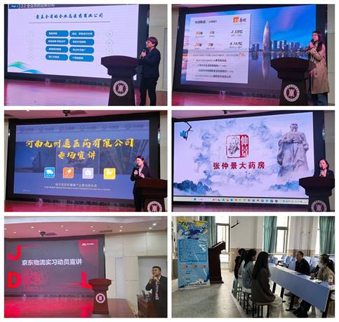 本次双选会采用线上线下相结合的形式进行,邀请国药控股河南股份有限公司、华润河南医药有限公司、河南九州通医药有限公司、河南张仲景大药房股份有限公司、河南京邦达供应链有限公司5家企业代表先到主会场进行现场宣讲,各企业负责人详细介绍了企业文化、岗位需求、人才培养计划和薪酬待遇等情况。随后,引导企业代表及学生至5个分会场,进行现场面试,招聘现场气氛热烈,秩序井然,学生携带个人求职简历积极与各用人单位进行沟通交流,了解单位基本情况、岗位需求和职位发展前景等。同时,设置了线上服务平台,及时将各用人单位的招聘信息通过线上平台第一时间转发至未到场的应届毕业生。