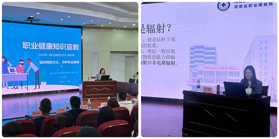 河南省职业病医院王曼和驻马店市疾病预防控制中心尼翠云担任宣讲人,两位专家对职业环境中物理、化学及放射性危害因素的识别和预防作了详尽、生动的讲解,增进了职业卫生相关专业学生对行业的认知,也使同学们深刻认识到了“坚持预防为主,守护职业健康”的重要性。
