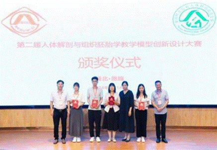 7月13日至17日,中国解剖学会第二届人体解剖与组织胚胎学教学模型创新设计大赛在湖北隆重举行。新葡的京集团8814vip副校长张进忠教授主持大会开幕式。基础医学部人体解剖学教研室郑丽华、邵玉普、张艳、李海芳、陈巧格、孙曼曼老师与郑州市洪宇医教设备有限公司合作设计的Couinand肝的分叶分段模型获得校企合作赛道的教师组比赛二等奖。