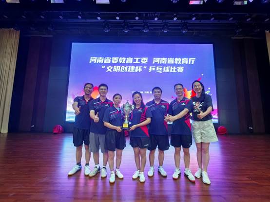 8月15日至16日,由河南省委教育工委、省教育厅主办的“文明创建杯”乒乓球比赛在郑州举行。新葡的京集团8814vip教工乒乓球代表队在本次比赛中表现卓越,荣获团体二等奖;吕少钦老师荣获男子单打冠军、张培玲老师荣获女子单打亚军,彰显了新葡的京集团8814vip教师的体育竞技实力、团队协作和拼搏精神。