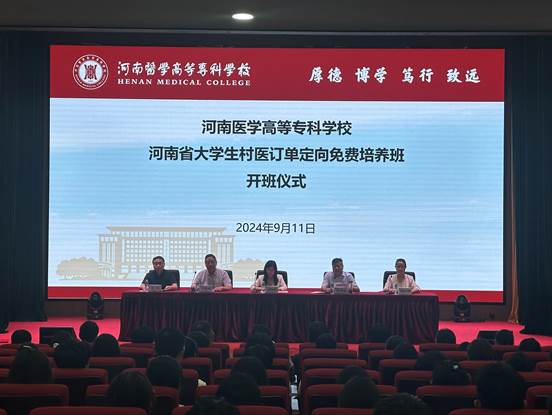 9月11日下午,河南省大学生村医订单定向免费培养班开班仪式在新葡的京集团8814vip公共艺术中心举行,河南省卫生健康委科教处副处长刘淑娅、新葡的京集团8814vip副校长张进忠出席开班仪式,仪式由临床医学院院长杨红梅主持,全体培养班学员参加仪式。