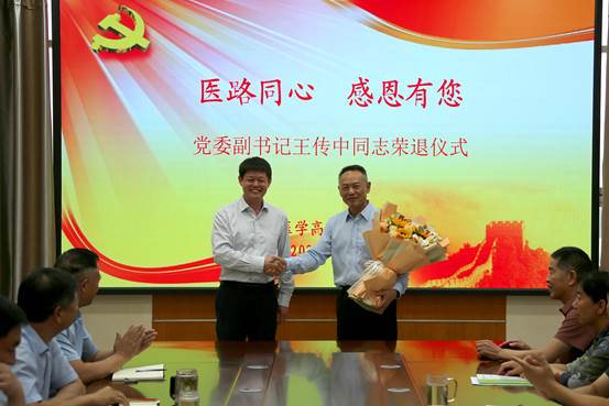 在仪式上,校领导为王传中副书记颁发了荣退证书、纪念奖杯,并送上鲜花和纪念品。与会干部代表也纷纷发言,回忆与王传中副书记共同奋斗的点滴时光,深切表达了对他的不舍和美好祝福。王传中副书记表示会一如既往关心支持学校发展,随时听取学校召唤。
