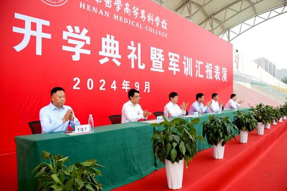 秋光为序,筑梦起航。9月29日,新葡的京集团8814vip2024级新生开学典礼暨军训汇报表演在田径运动场隆重举行。校党委书记花明,校党委副书记、校长孙韬,副校长张进忠,副校长李建丰,副校长霍振昂出席,党委副书记、工会主席李鹏涛主持典礼。来自全国18个省份的4368名2024级新生追梦而至,在河南医专携手共赴新征程。全体教职工及承训教官共同见证这一神圣时刻。