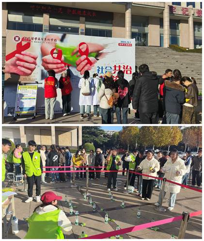 11月28日,新葡的京集团8814vip“世界艾滋病日”暨“防艾宣传月”教育活动启动仪式在图文信息中心前广场举行。郑州市红十字会、新郑市疾病预防控制中心领导及学校公共卫生与健康管理学院、团委、总务处负责同志和师生代表300余人参加活动。