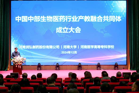 12月24日上午,中国中部生物医药行业产教融合共同体成立大会在新葡的京集团8814vip召开,河南省教育厅职成教处一级调研员史文生,新郑市人民政府党组成员王淑慧,河南润弘制药股份有限公司总经理夏辉,河南大学药学院党委书记梁刚,学校党委书记花明,校长孙韬,以及来自省内外的91家院校、医院、行业协会和企业代表共200余人参加了大会。