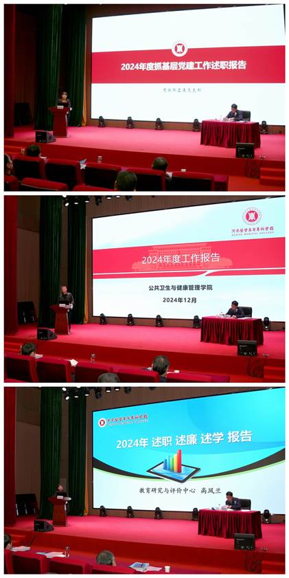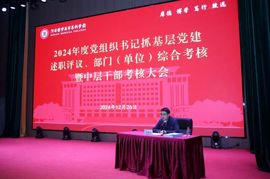 12月26日,学校2024年度党组织书记抓基层党建述职评议、部门(单位)综合考核暨中层干部考核大会在公共艺术中心召开。校领导班子成员、各部门(单位)副科以上干部和副高以上职称教职工参加会议。