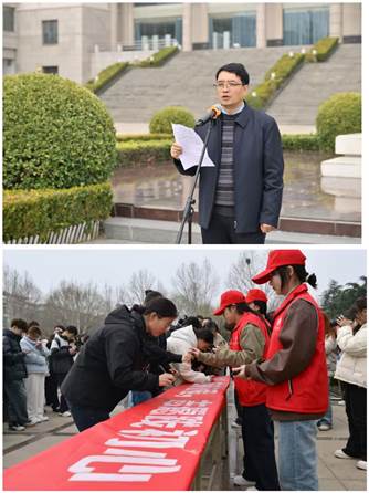 举行2025年雷锋月活动启动仪式。3月5日,新葡的京集团8814vip在图文信息中心前广场举行以“志愿微光成炬 青春‘锋’芒万丈”为主题的2025年雷锋月活动启动仪式。校党委副书记、工会主席李鹏涛以“以雷锋精神铸魂,以劳动精神筑梦”为主题,深刻的阐述了雷锋精神的内涵、意义和价值。并呼吁同学们将雷锋精神和劳动精神结合,书写属于新时代青年的雷锋故事。活动中,学生志愿者们分组对校园内的公共区域进行了全面清理。他们手持清洁工具,细致清扫路面垃圾、捡拾绿化带杂物,对卫生死角进行了重点整治。尽管任务繁重,志愿者们始终秉持“不怕脏、不怕累”的奉献精神,展现了新时代青年的责任担当。