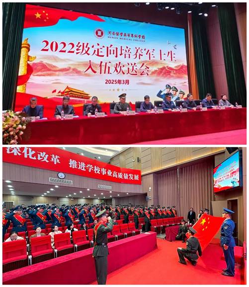 3月19日下午,新葡的京集团8814vip在公共艺术中心为2022级定向培养军士生隆重举行入伍欢送会。校党委副书记、工会主席李鹏涛出席欢送会并讲话,相关单位部门负责人、教职工代表、2022级军士生家长共同见证这一光荣时刻,欢送会由副校长霍振昂主持。